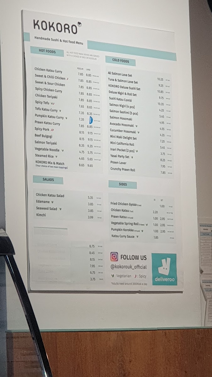 Introducing the menu at Kokoro Basingstoke, a delightful culinary destination in the heart of Basingstoke, offering a vibrant selection of Japanese-inspired dishes. From the Chicken Katsu Salad (£5.35) to a variety of tantalizing sides like Fried Chicken (£1.00) and Vegetable Spring Roll (£1.00), there's something for every palate. The popular Katsu Curry is a must-try, with generous portions that leave you satisfied.